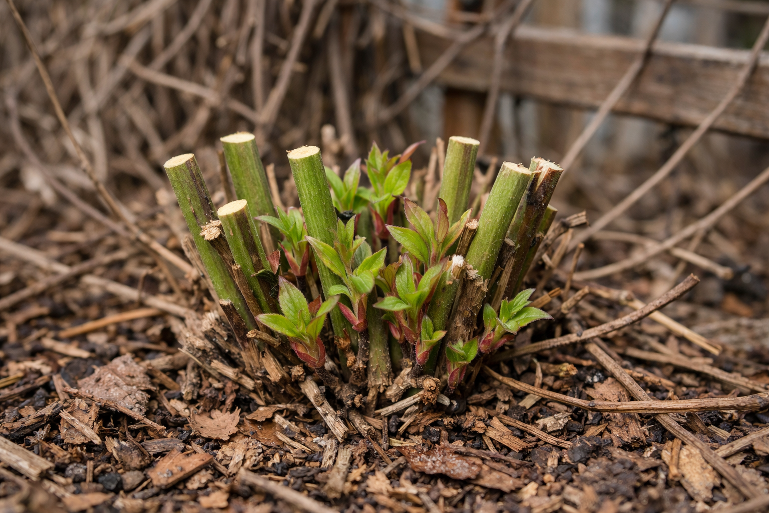 Alle frosne, tørre og sorte dele af stænglerne skal skånselsløst skæres ned til den første sunde, grønne knop.