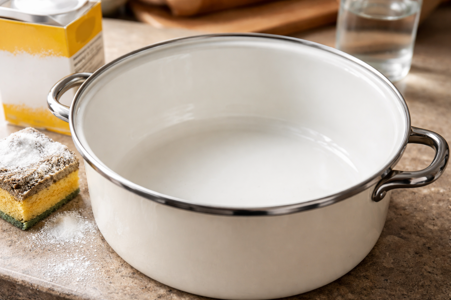 Sod og mørke aflejringer på dit foretrukne emaljerede køkkengrej virker som en dom, men du kan slippe af med dem på få minutter. Glem alt om skrappe børster og ætsende kemikalier, der beskadiger belægningen, for der findes en sikker hjemmemetode, der bringer den uberørte hvidhed tilbage.