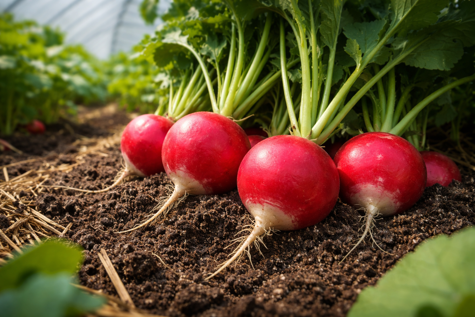 Radiser er utroligt lyselskende. Hvis der er mangel på sol, kaster den straks alle sine kræfter ind i trækket. Drivhuset skal placeres på det mest åbne sted på grunden. Vanding har også sine egne finesser. Jeg vander ikke bedene en lille smule hver dag. I stedet anvendes det sparsom vandinghvilket får roden til at række ned efter fugt og opbygge sin masse.