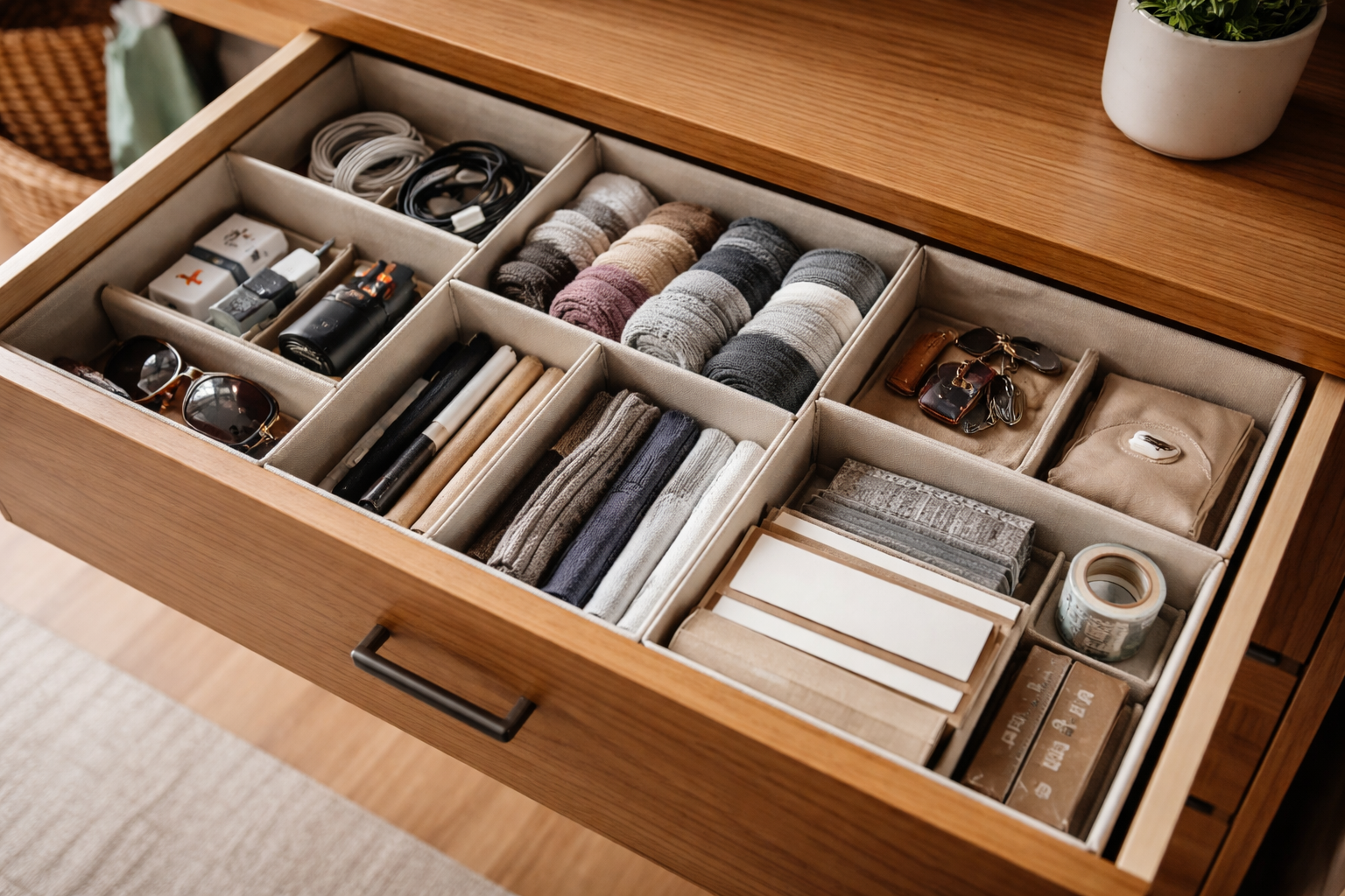 Start med et lille område, f.eks. den øverste skuffe på dit skrivebord, for hurtigt at opleve de første motiverende resultater.