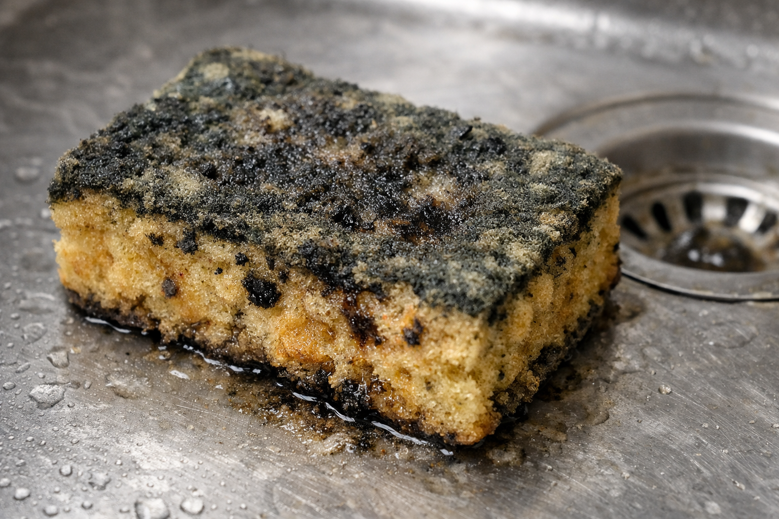 Lad aldrig vådt skumgummi ligge i bunden af vasken, det er en perfekt inkubator for bakterier.
