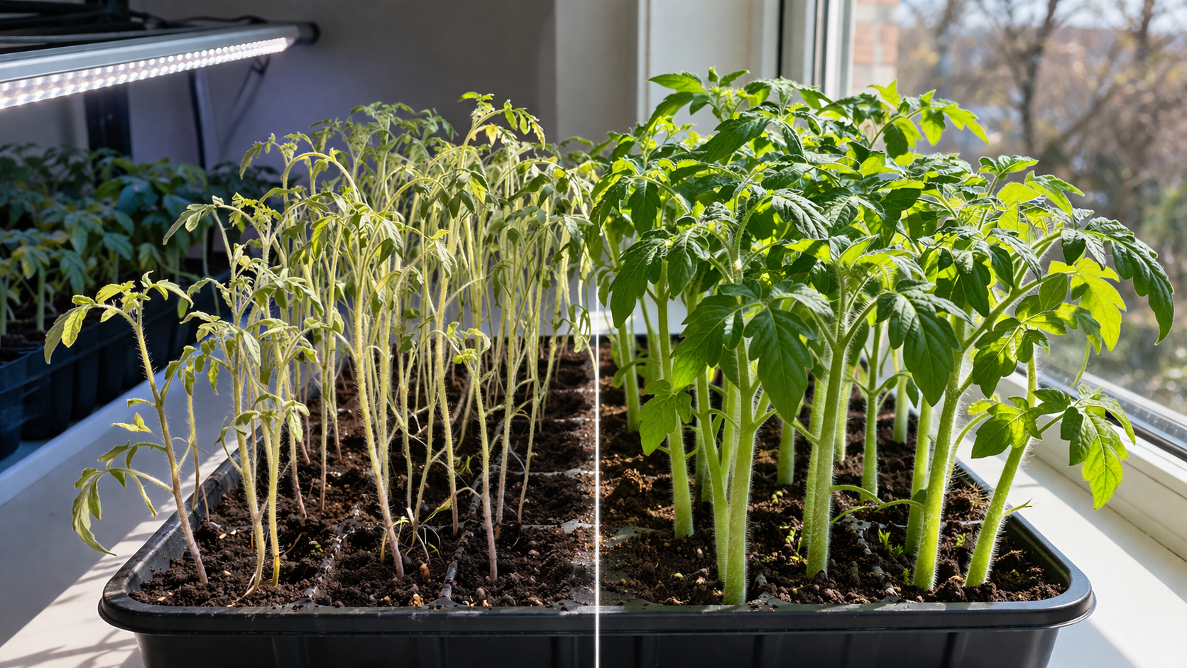 Hvert forår står grøntsagsgartnere over for den samme ulykke – tynde, udstrakte og lysegrønne tomatplanter klamrer sig desværre til vindueskarmen på grund af mangel på sollys. Hvis dine kimplanter ser svage og livløse ud bagerst i rummet, skal du ikke skynde dig at begynde at så igen, for jeg vil fortælle dig, hvordan du kan genoprette deres tykke stængler og rige farve med enkle ændringer i plejen.