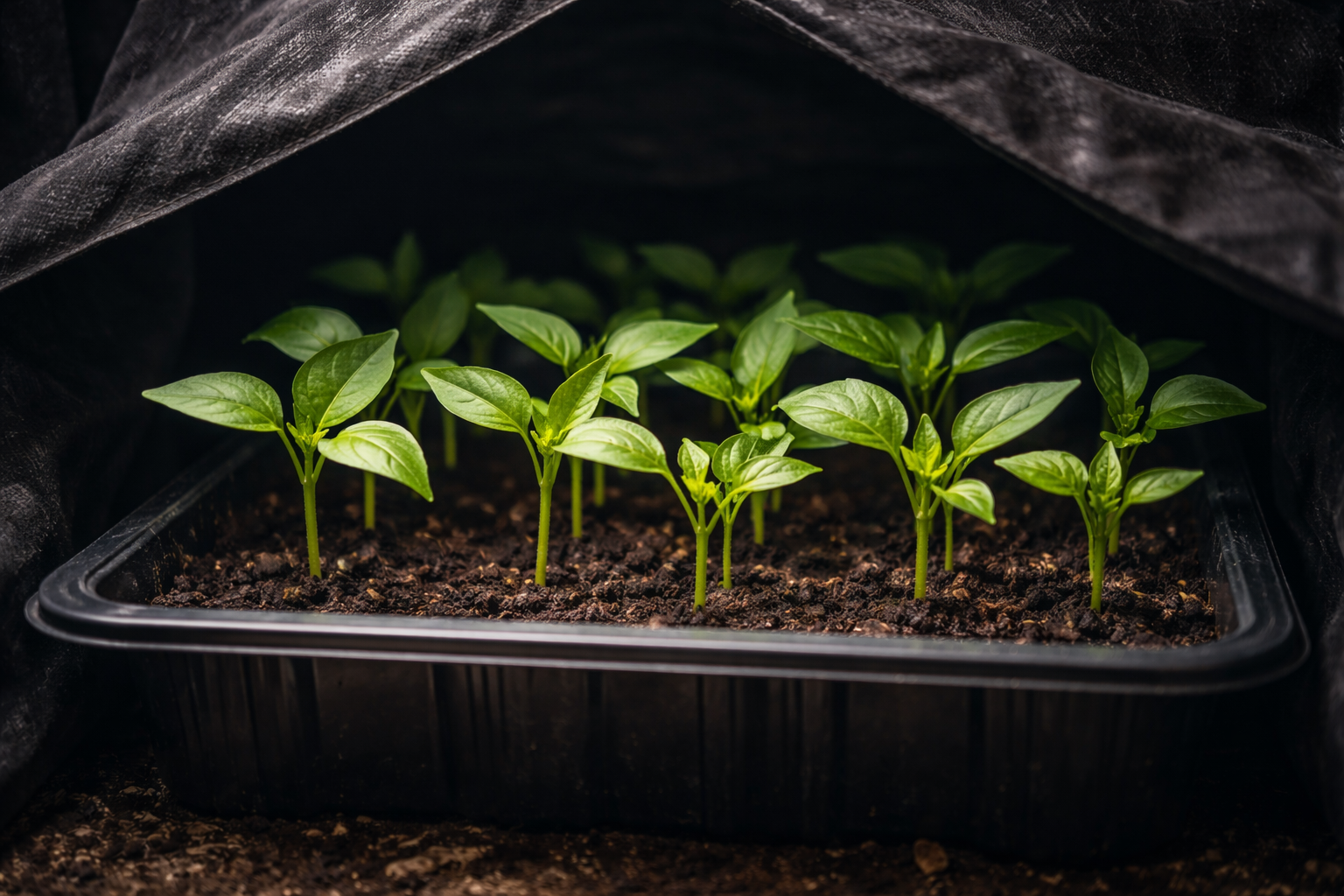 Under naturlige forhold ligger frøene dybt i jorden, hvor sollyset ikke kan trænge ned. De har kun brug for fugt og de rette betingelser for at starte deres livscyklus. Temperaturregime. Lys på dette stadie er mere en stressfaktor, der signalerer, at frøet befinder sig på en overflade, hvor det hurtigt kan tørre ud. Ved at skabe kunstigt mørke giver vi den perfekte drivhuseffekt uden risiko for udtørring.