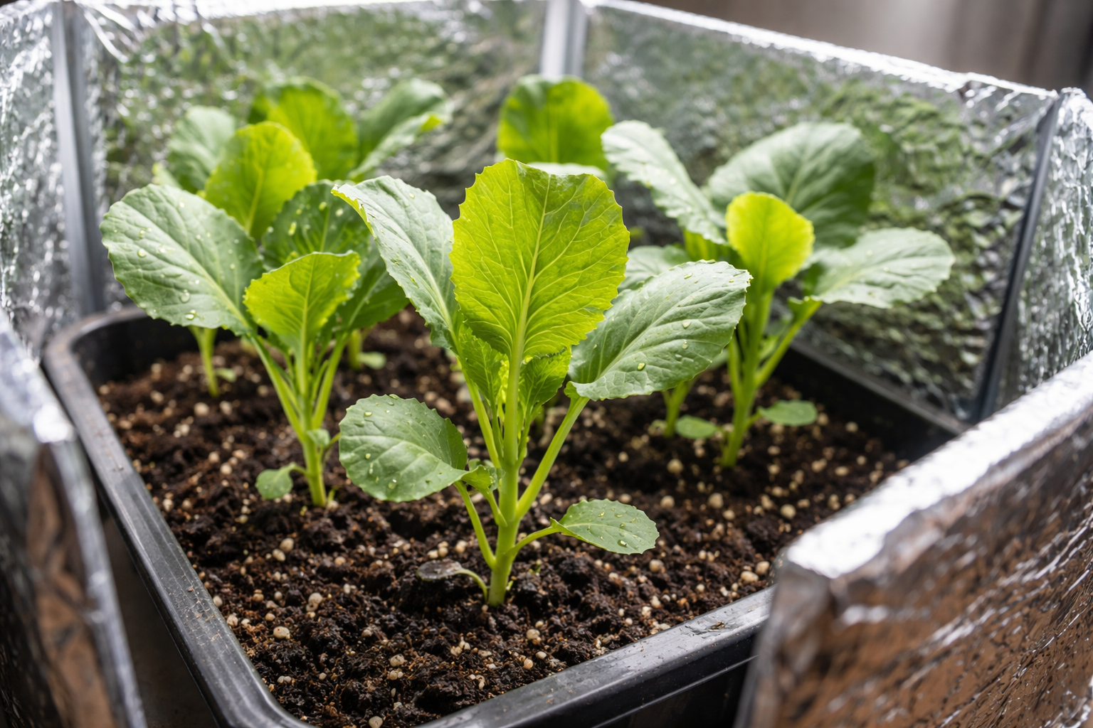 Sæt reflekterende folieskærme op omkring beholderne for at maksimere de tilgængelige stråler.