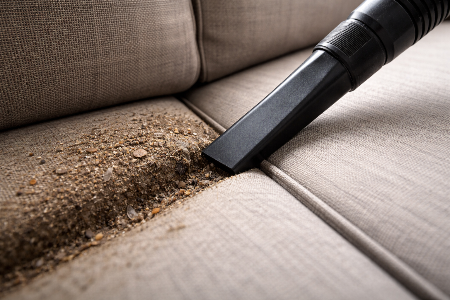 Hemmelighed: Støvsug altid sømme, folder og samlinger på møbler med et smalt spaltemundstykke, da det er her, op til 80 procent af alt snavs og sand samler sig.