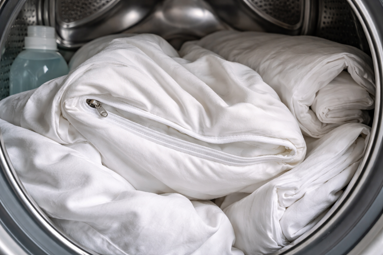 Hemmeligheden bag den lange levetid ligger i at vende vrangen ud på dynebetrækket og lyne det op – det holder trykket lyst og beskytter maskintromlen mod stød fra hardware.