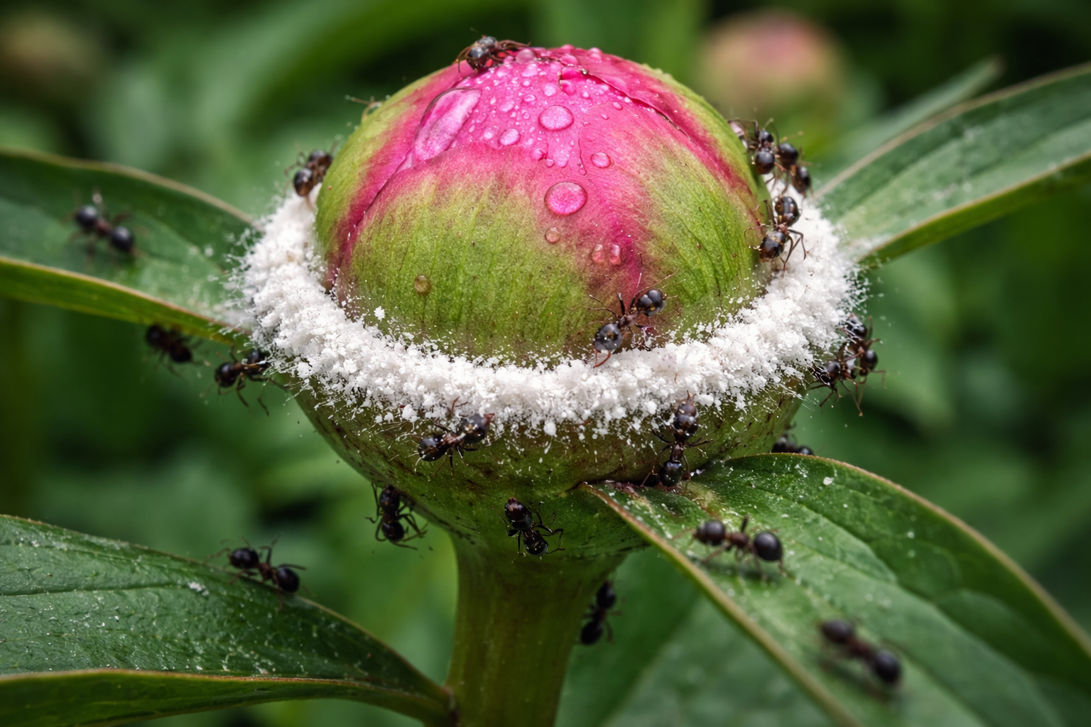 Myrer spiser ikke kronblade og blade, de tiltrækkes udelukkende af den næringsrige sirup, men de kan indføre bladlus eller beskadige det øverste lag af knoppen, så den deformeres.