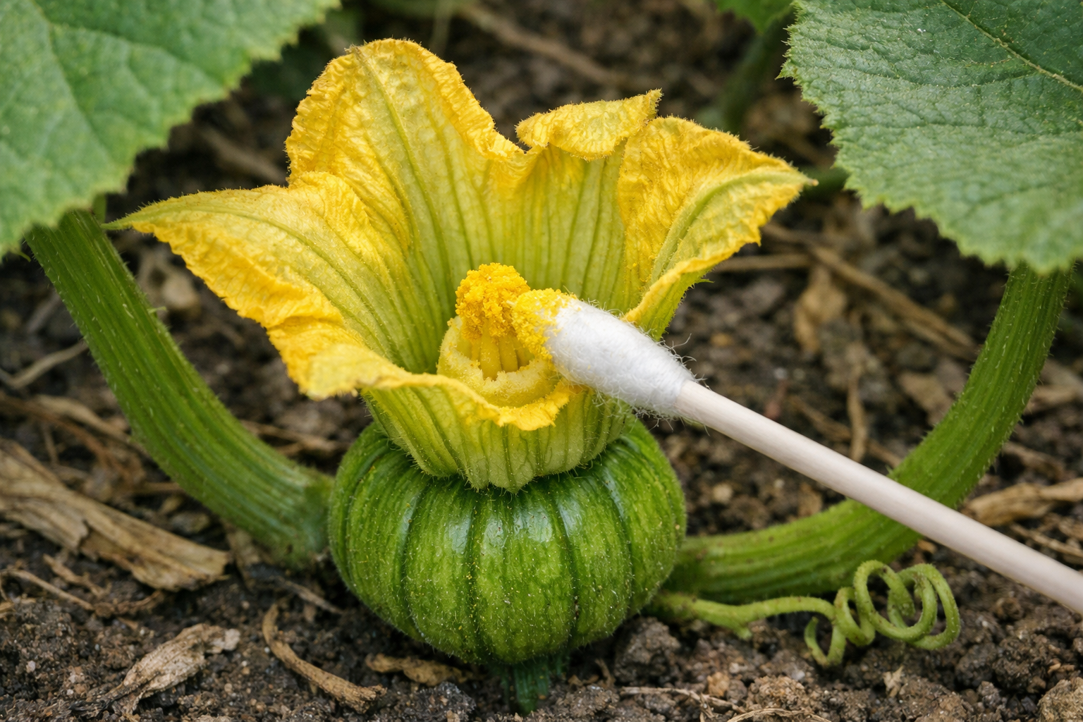 Pluk forsigtigt hanblomsten uden fortykkelse ved basis