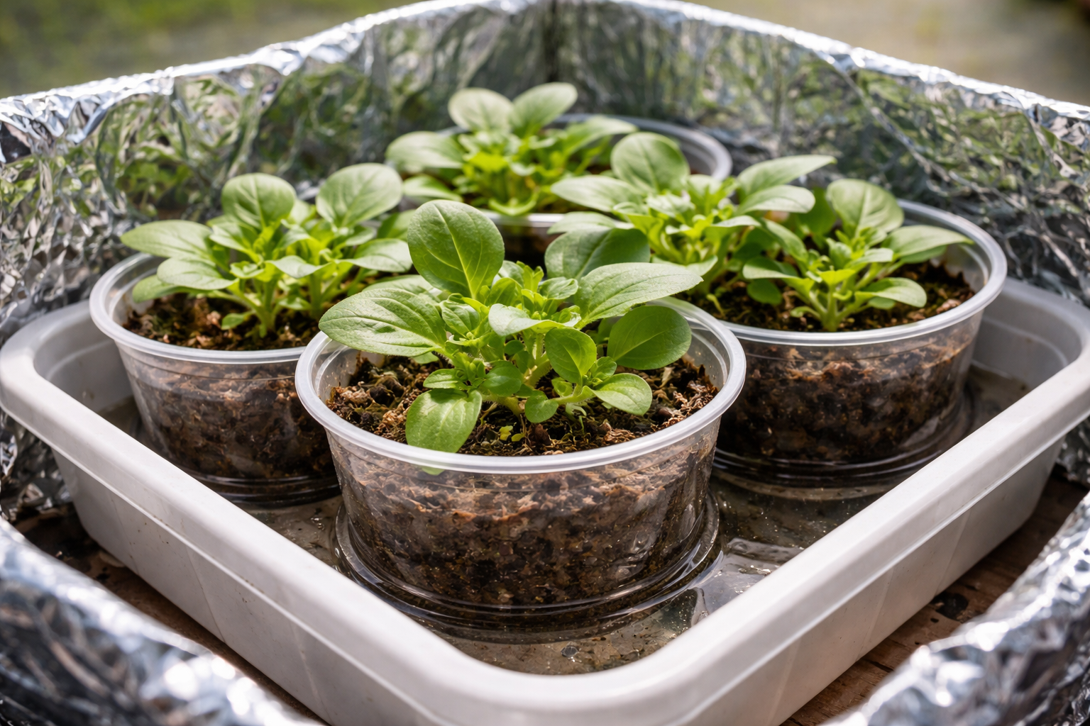 Jeg kæmpede med dette problem i mange år, indtil jeg skiftede til systemet Vanding i bunden i kombination med en reflekterende skærm. Denne metode ændrer absolut alt. Ideen er at tvinge rødderne til at søge ned efter fugt og samtidig beskytte plastbeholderen mod kritisk varme.