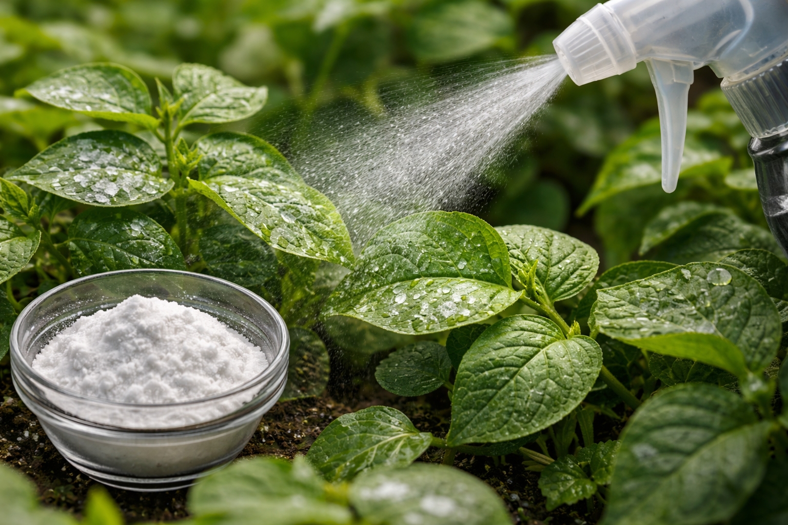 Sprøjtning skal udføres i vindstille vejr, helst om aftenen eller tidligt om morgenen, så direkte sollys ikke fremkalder termisk forbrænding af våde blade. Sodasammensætningen virker kun i direkte kontakt med patogenet, så det er vigtigt at fugte ikke kun oversiden, men også undersiden af bladpladen grundigt.