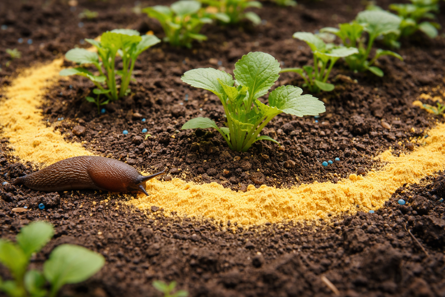 Mange gartnere undervurderer dette overkommelige produkt. Men tør sennep fungerer som et kraftigt naturligt afskrækningsmiddel på sengene. Hemmeligheden bag dens effektivitet ligger i den delikate struktur i bløddyrenes underliv, hvor kontakt med det stikkende stof er dødelig eller ekstremt smertefuld.