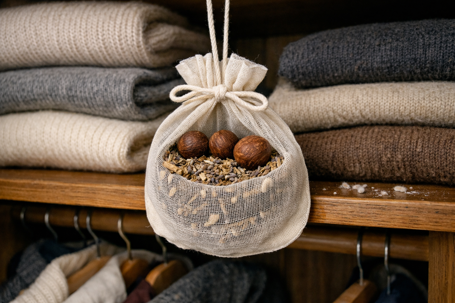 For at opnå ideelle resultater anbefaler jeg kraftigt, at man kombinerer flere metoder. Først udføres en dyb mekanisk rengøring, og derefter installeres et naturligt afskrækningsmiddel. Spred dig ud cedertræskugler eller tykke stofposer med tørrede krydderurter i lommerne på vinterfrakken. Tørrede nelliker, rosmarin og timian er fremragende.