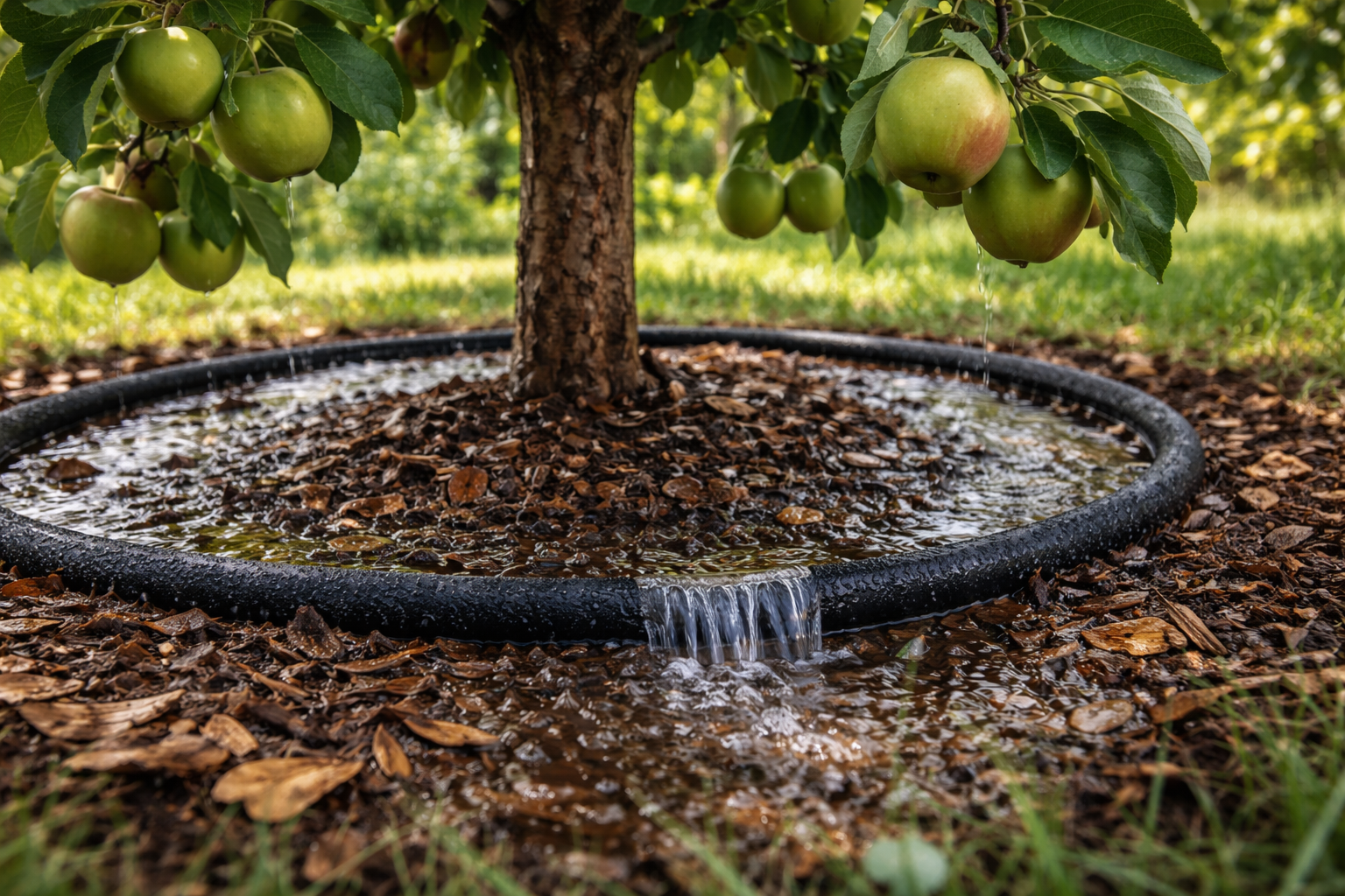Hovedhemmeligheden: Hæld ikke vand under stammens basis, men udelukkende langs kronens fremspring, hvor de aktive, absorberende rødder er koncentreret.