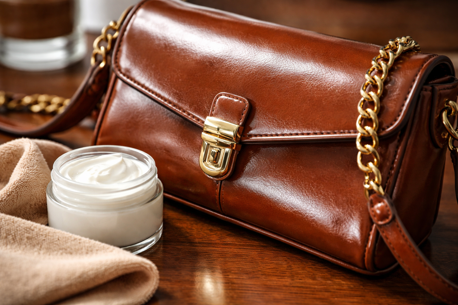 Kosmetisk creme til hænder og ansigt er en perfekt erstatning for professionel voks til naturmaterialer. Den tykke tekstur plejer overfladen og dækker mindre skrammer på dine yndlingstasker, -jakker og -sofaer.