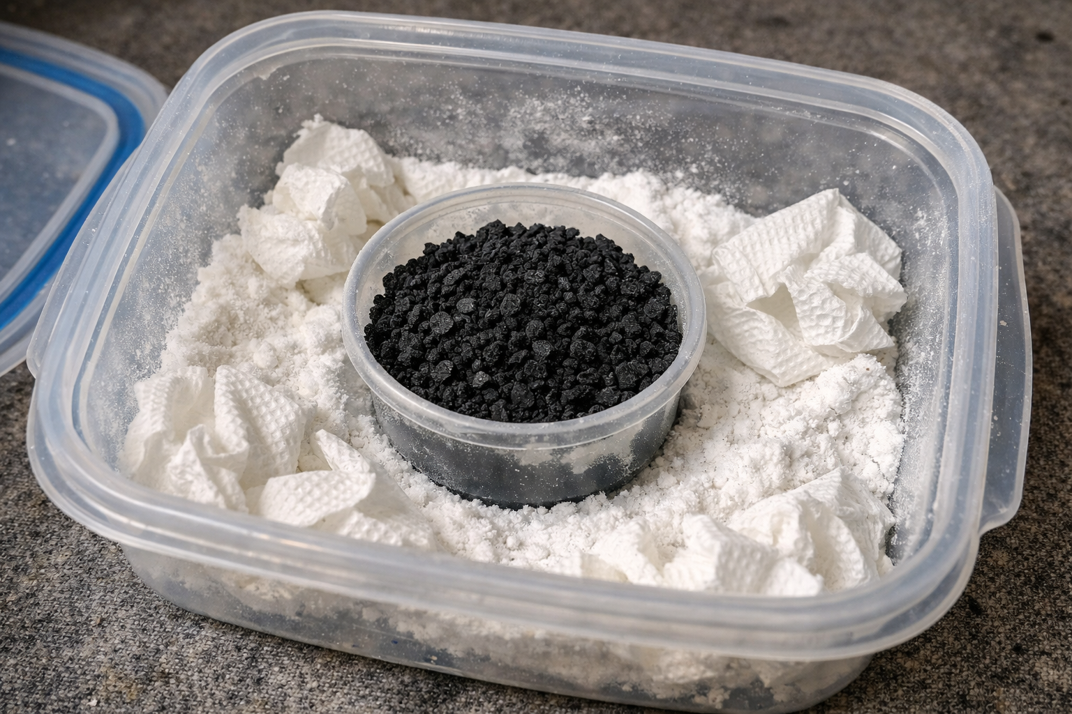 Brug bagepulver som et stærkt absorberende middel til at trække fine partikler ud af tekstilfibre.