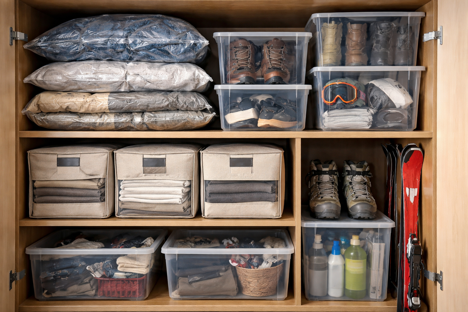 En stor fejl, når man rydder op i sit ikke-sæsonbestemte lager, er at forsøge at proppe alt ned i én stor kasse. Før du gemmer tingene væk, skal de organiseres ordentligt. Vakuumposer и plastbeholdere opfylder forskellige opgaver og bør ikke forveksles.