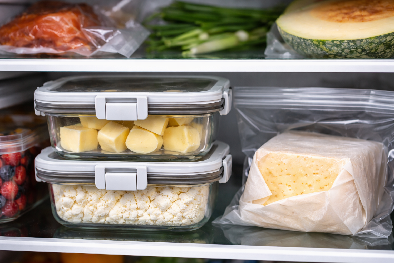 Læg mejeriprodukter i tætte vakuumbeholdere Glas
