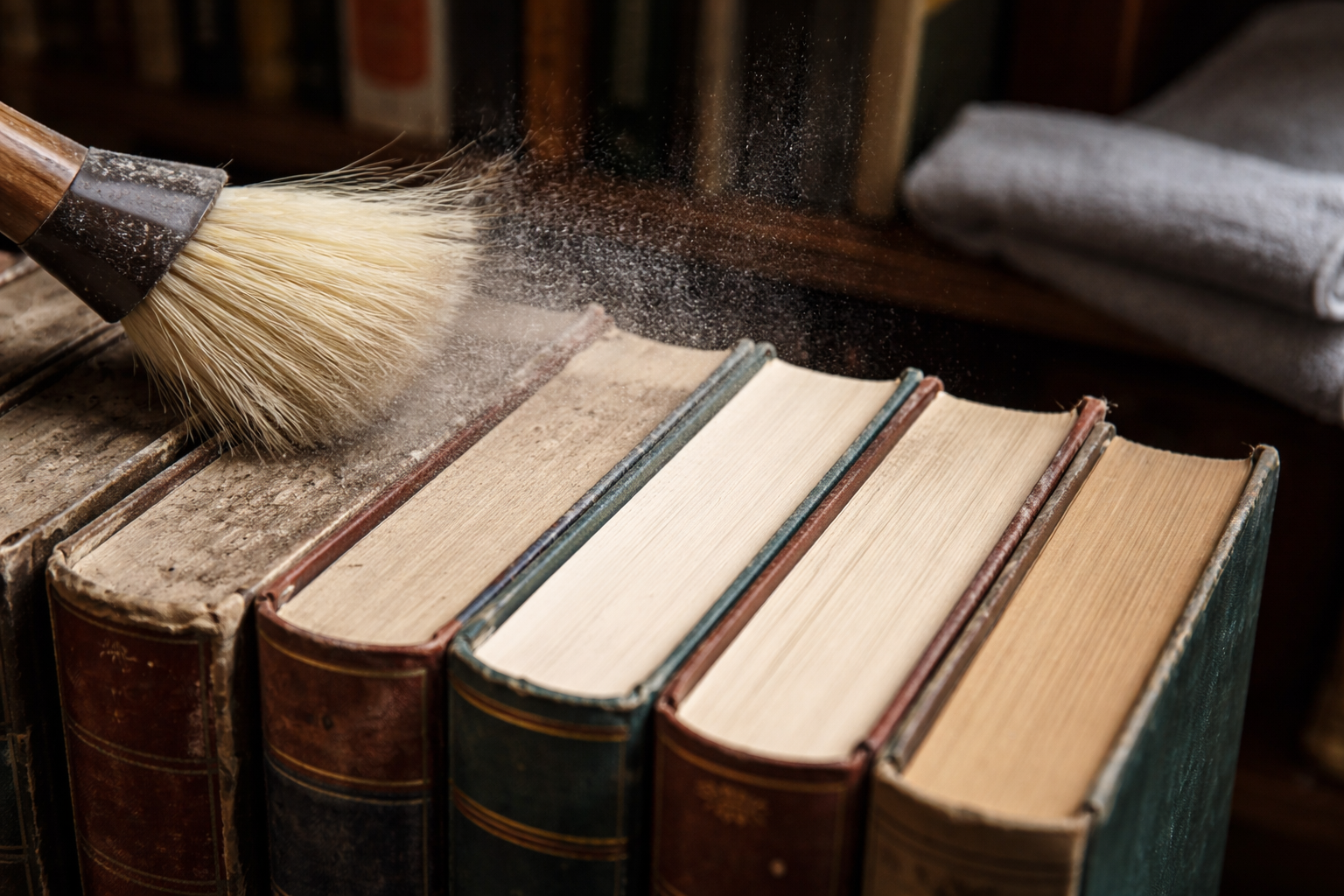 Bogreoler tiltrækker en enorm mængde støv og forvandler sig fra en kilde til stolthed til en kilde til allergi og dårlig lugt. I løbet af de år, jeg har arbejdet med private arkiver, har jeg fundet et par gennemprøvede måder, hvorpå man hurtigt kan få bogrygge og omslag til at se perfekte ud uden brug af skrappe kemikalier.