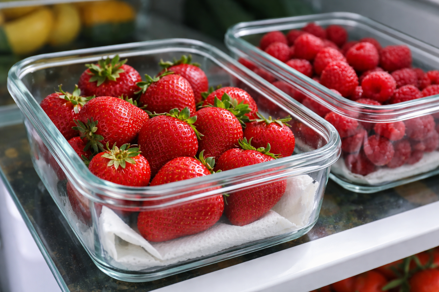Overskydende fugt er den største fjende, så beholderne skal placeres på de midterste hylder i køleskabet. Friskhedszonen har ofte for høj luftfugtighed, hvilket er skadeligt for sarte sorter.