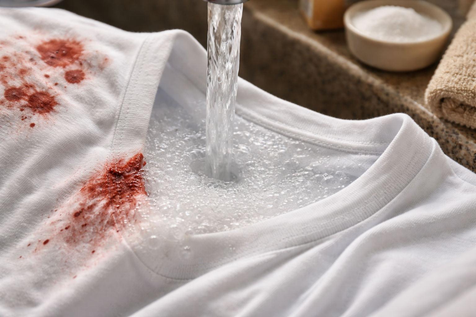 Hovedreglen for fjernelse af blod er kun at bruge koldt vand, da den høje temperatur permanent svejser proteinet fast inde i fibrene og gør det til et uudsletteligt farvestof.
