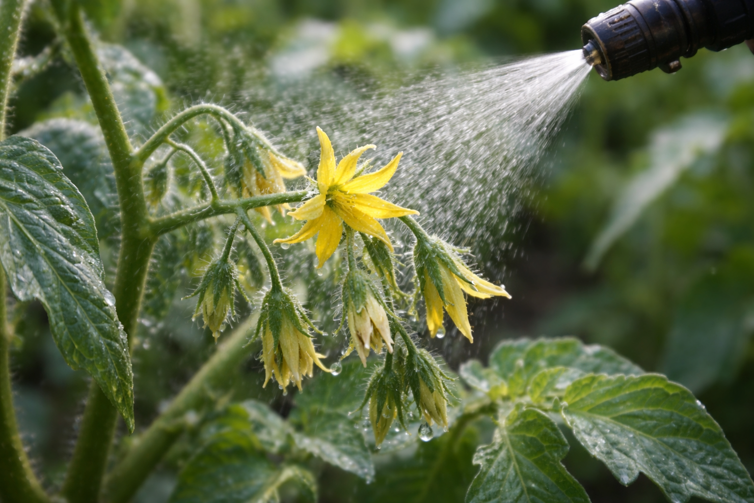 Vigtigt tip: Sprøjt altid med en dyse, der skaber en “tåge”-effekt, så dråberne ikke samles i linser i solen og ikke traumatiserer den sarte bladplade.