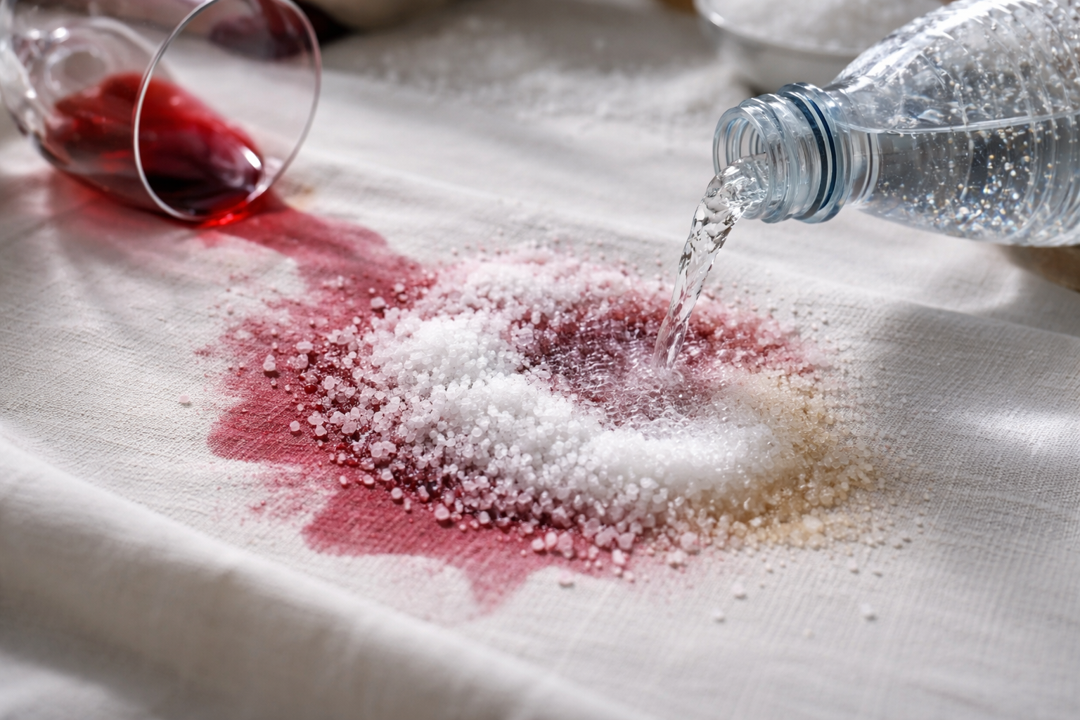 Så snart der sker et uheld, begynder tiden at arbejde imod dig. Den røde farve på drikken anthocyaniner – naturlige farvestoffer, der absorberes meget hurtigt i materialets struktur.