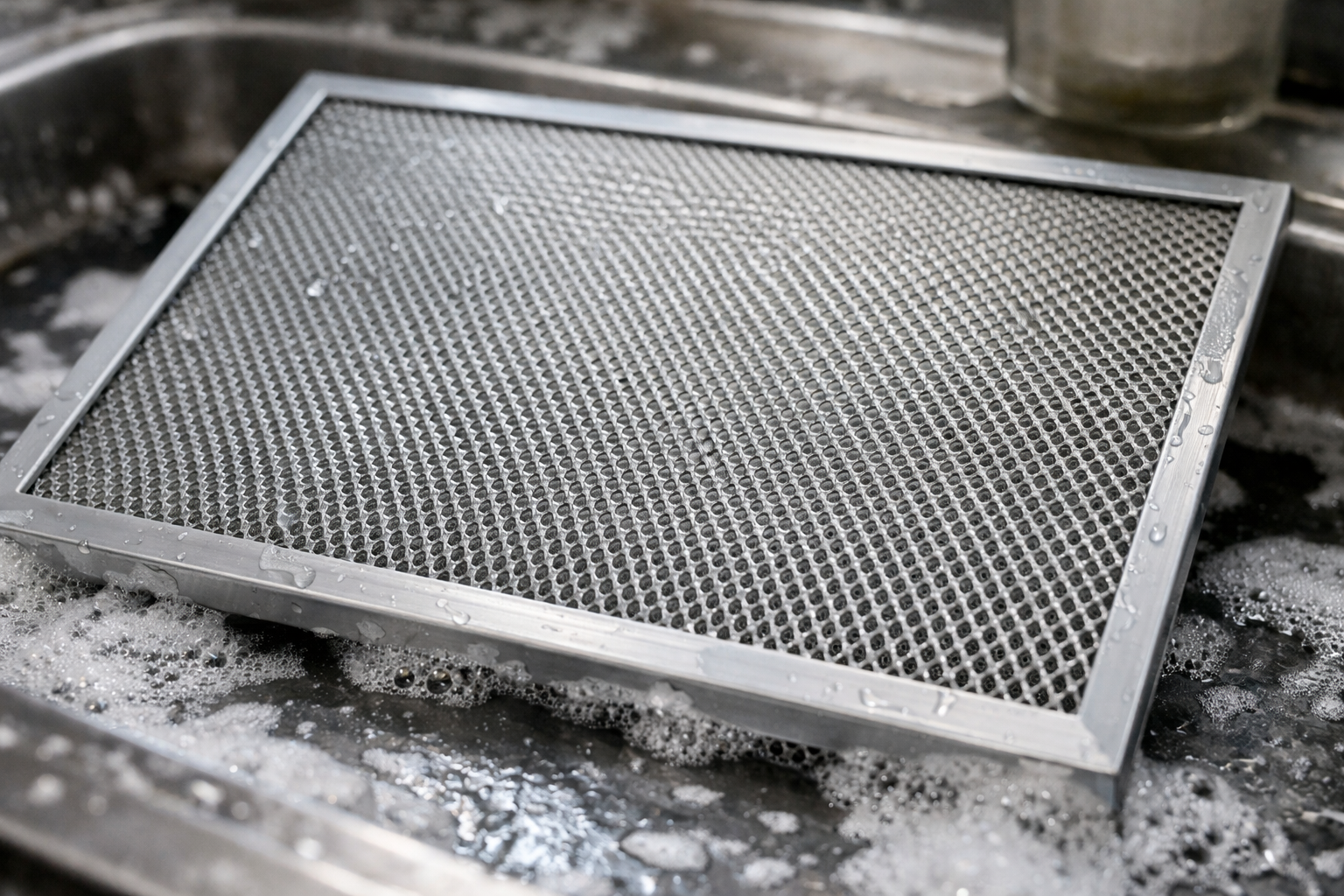 Hvis du laver mad regelmæssigt, anbefales det at skylle fedtudskillerens metalrist en gang om måneden.