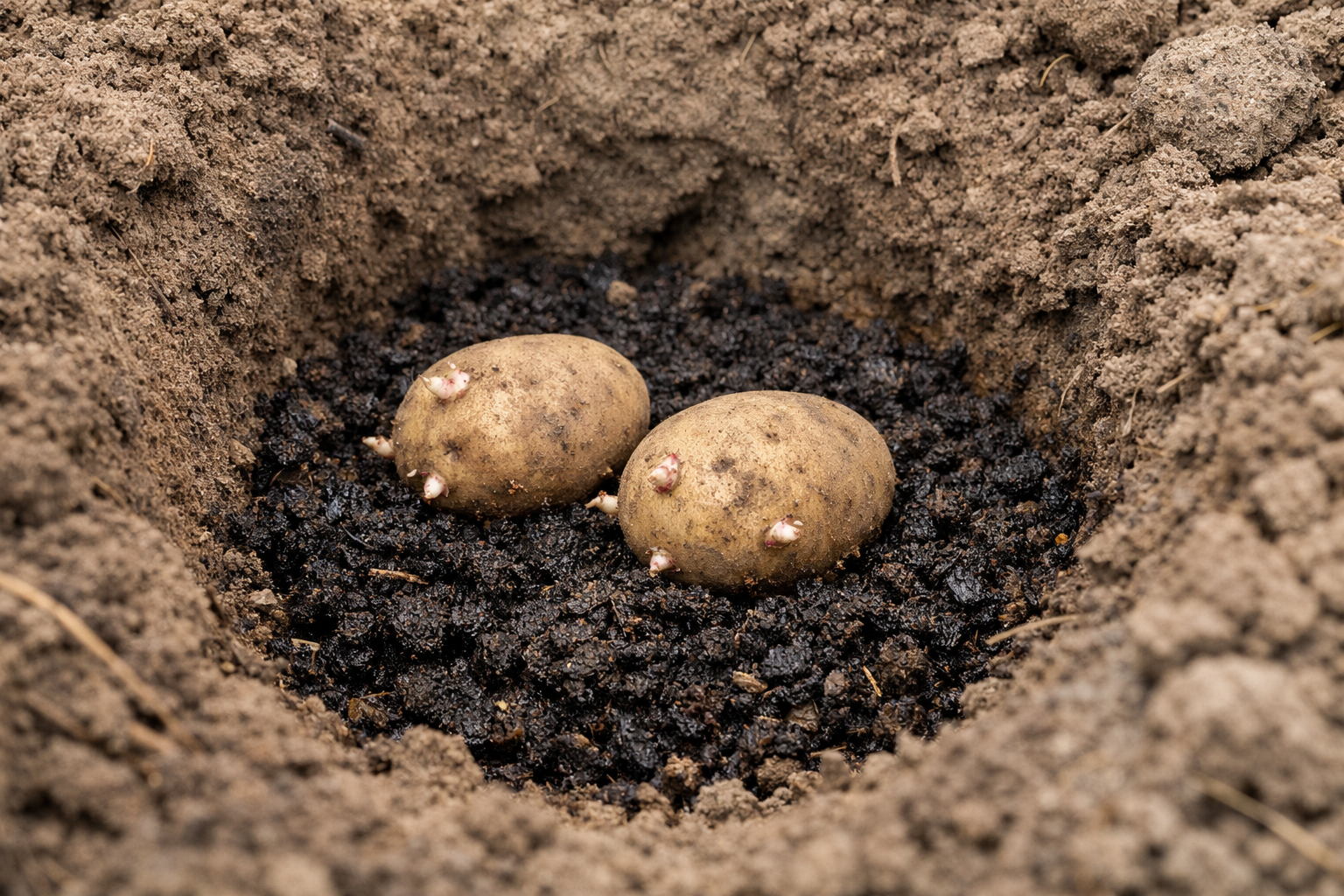 Erfarne gartnere ved, at kartoffelplantning kræver omhyggelig jordforberedelse. Kartoffelbusken bruger en enorm mængde næringsstoffer i løbet af en kort vækstsæson. Hvis jorden er fattig på mikronæringsstoffer, vil planten simpelthen ikke være i stand til at danne store frugter. Tilførsel af kompost af god kvalitet eller overgæret organisk materiale skaber en ideel næringspude lige under rødderne.