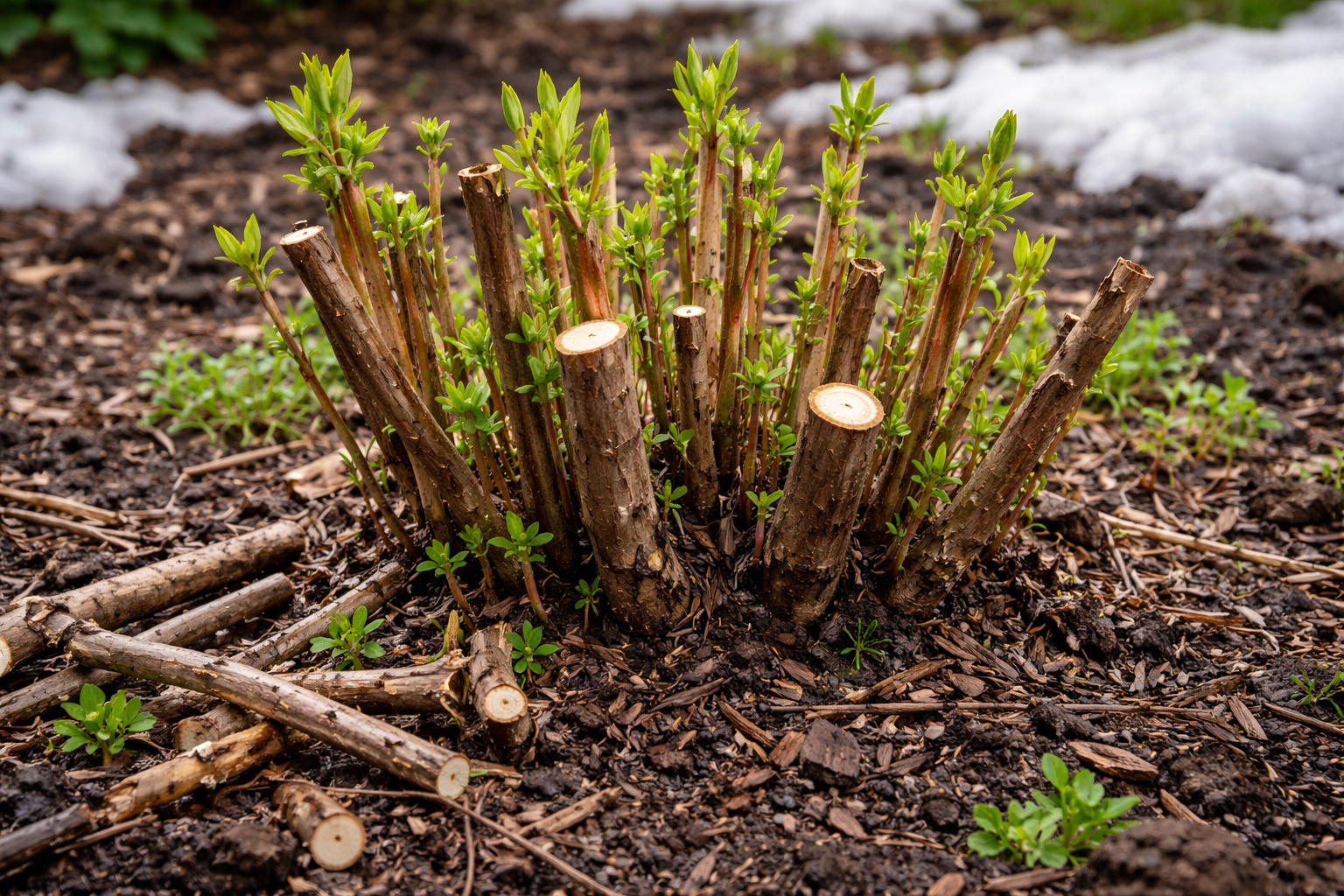 Arbejdet udføres i det tidligste forår, før knopperne åbner sig, så snart den største sne er smeltet.