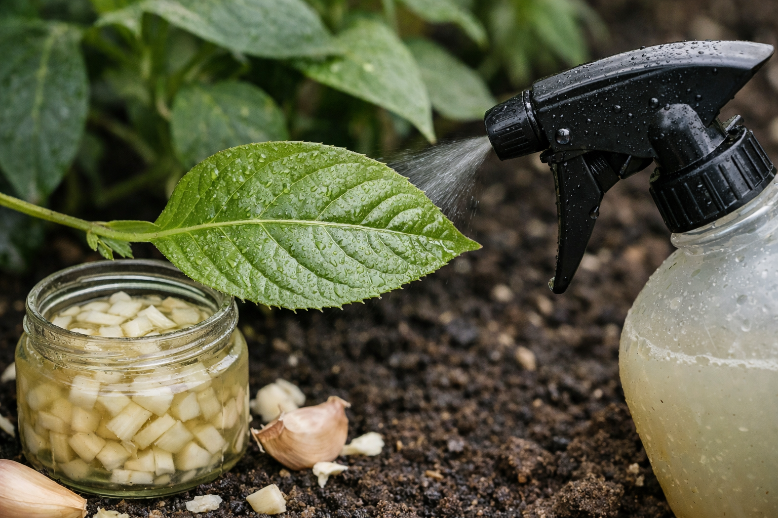 En meget svag opløsning af æblecidereddike må gerne bruges til afskrækkende sprøjtning, men det er vigtigt at overholde proportionerne nøje for at undgå kemiske forbrændinger på de grønne planter.