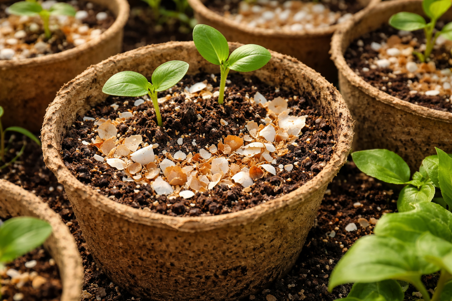 Til tomat- og peberplanter lægger jeg et lag i bunden af hver kop. Det er især vigtigt, hvis du bruger beholdere uden drænhuller. Calciumi skallerne styrker planternes cellevægge, hvilket gør dem mere modstandsdygtige over for temperatursvingninger, når de plantes udendørs.