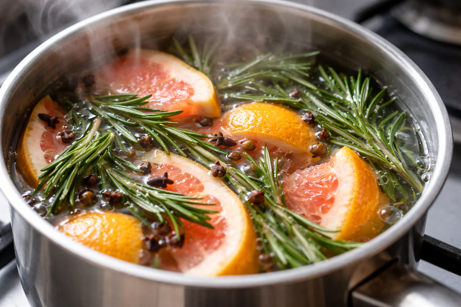 Den vigtigste sikkerhedsregel: Efterlad aldrig den kogende aromatiske blanding uden opsyn, og fyld jævnligt op med kogende vand for at forhindre, at planterne klæber til den tørre bund og begynder at ryge.