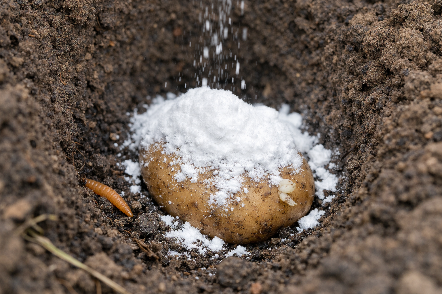 Hovedhemmeligheden ligger i en skarp lokal ændring i jordens surhedsgrad omkring knolden, som tvinger skadedyret til straks at forlade bedet på jagt efter et mere behageligt miljø.