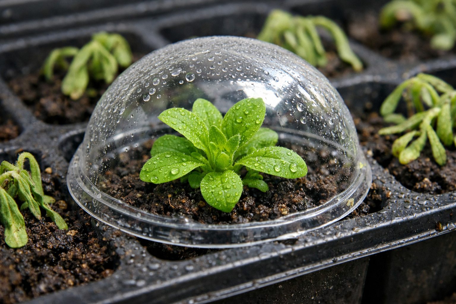 Omplantningsprocessen ender ofte ulykkeligt for de spæde spirer, som pludselig taber deres blade og bliver til en udtørret plante. Dette materiale beskriver, hvorfor det sker, og hvordan man hurtigt kan genoplive visne kimplanter uden brug af aggressiv kemi.