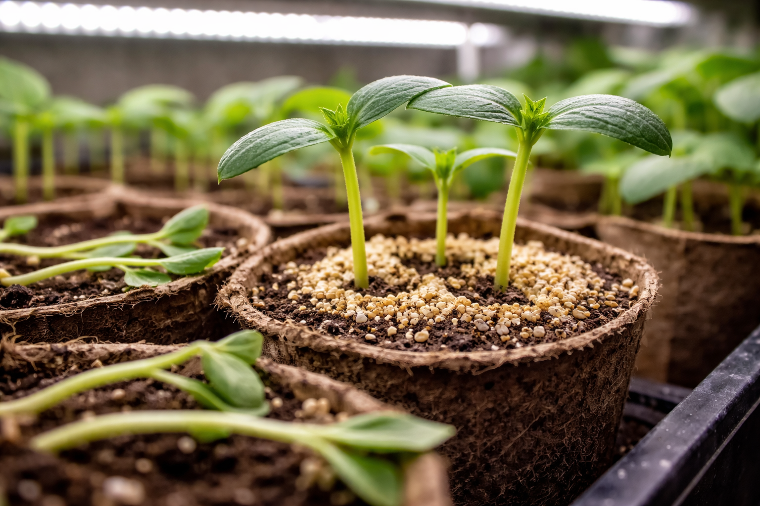 For at kunne udvikle sig fuldt ud har kimplanter brug for stærkt lys i 14 timer dagligt.