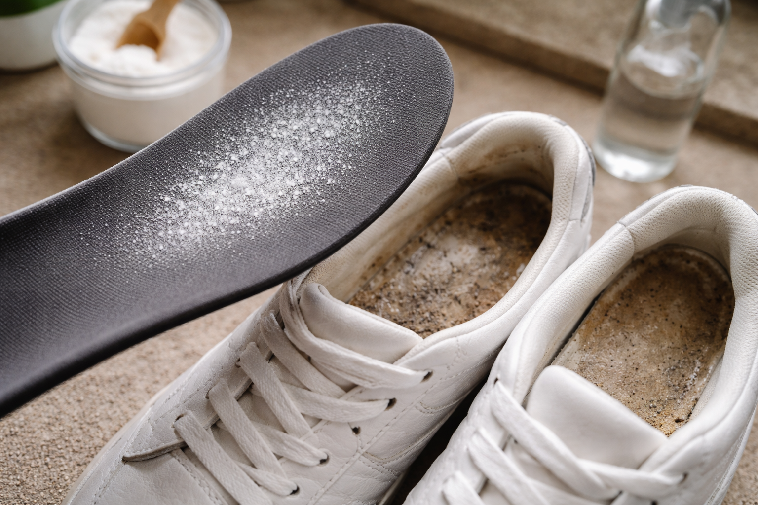 Tørring af sko ved stuetemperatur med indlægssålerne helt ude forlænger deres friskhed flere gange mere effektivt end brug af aggressive, parfumerede deodoranter.