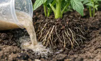 Anvendelse træaske. Hæld en håndfuld i hvert hul, når du planter.
