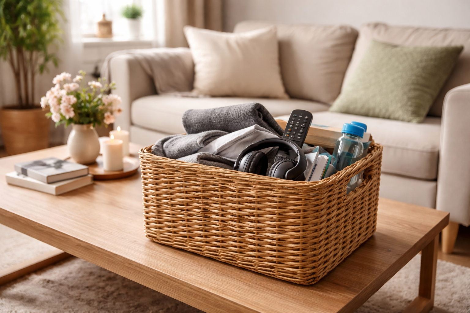 Hovedhemmeligheden bag hurtig rengøring er at minimere din bevægelse rundt i rummene. Læg alle dine spredte ting i en rummelig kasse, som du kan sortere senere, og du vil med det samme fjerne det visuelle kaos.