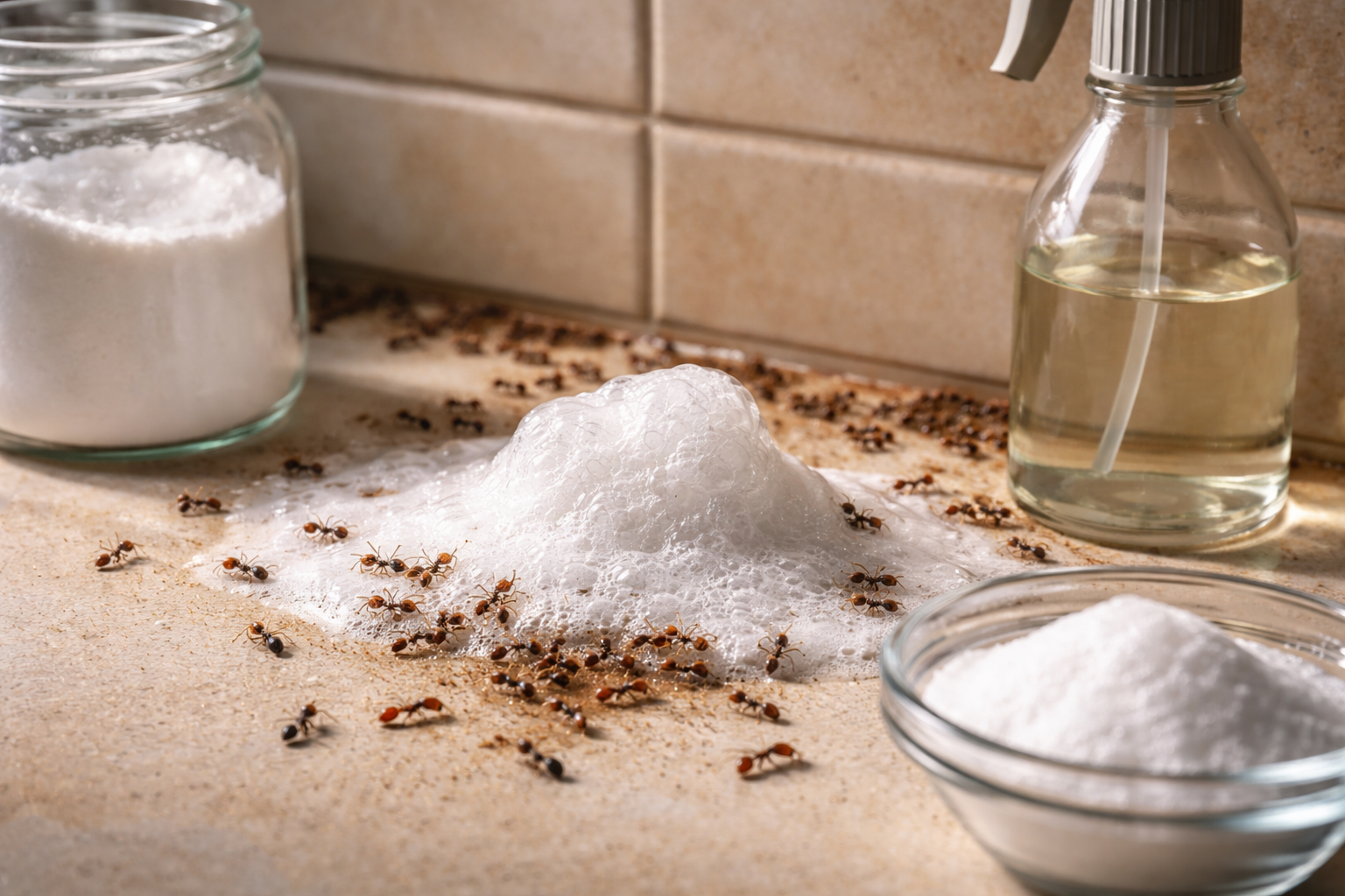Når den første varme sætter ind, indtager disse små uønskede gæster straks køkkenskabe og bordplader, men jeg har fundet en helt idiotsikker løsning på problemet. Du behøver ikke at forgifte din familie og dine kæledyr med ætsende industrielle aerosoler, for almindelig natron parret med eddike vil med garanti rydde dit hus for insekter på bare et par dage.