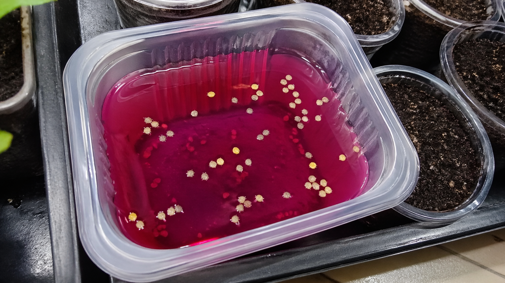Nedsænk aldrig helt tørre frø i et aktivt antiseptisk middel med det samme, da du ellers risikerer kemiske forbrændinger af det sarte væv i den kommende spire.