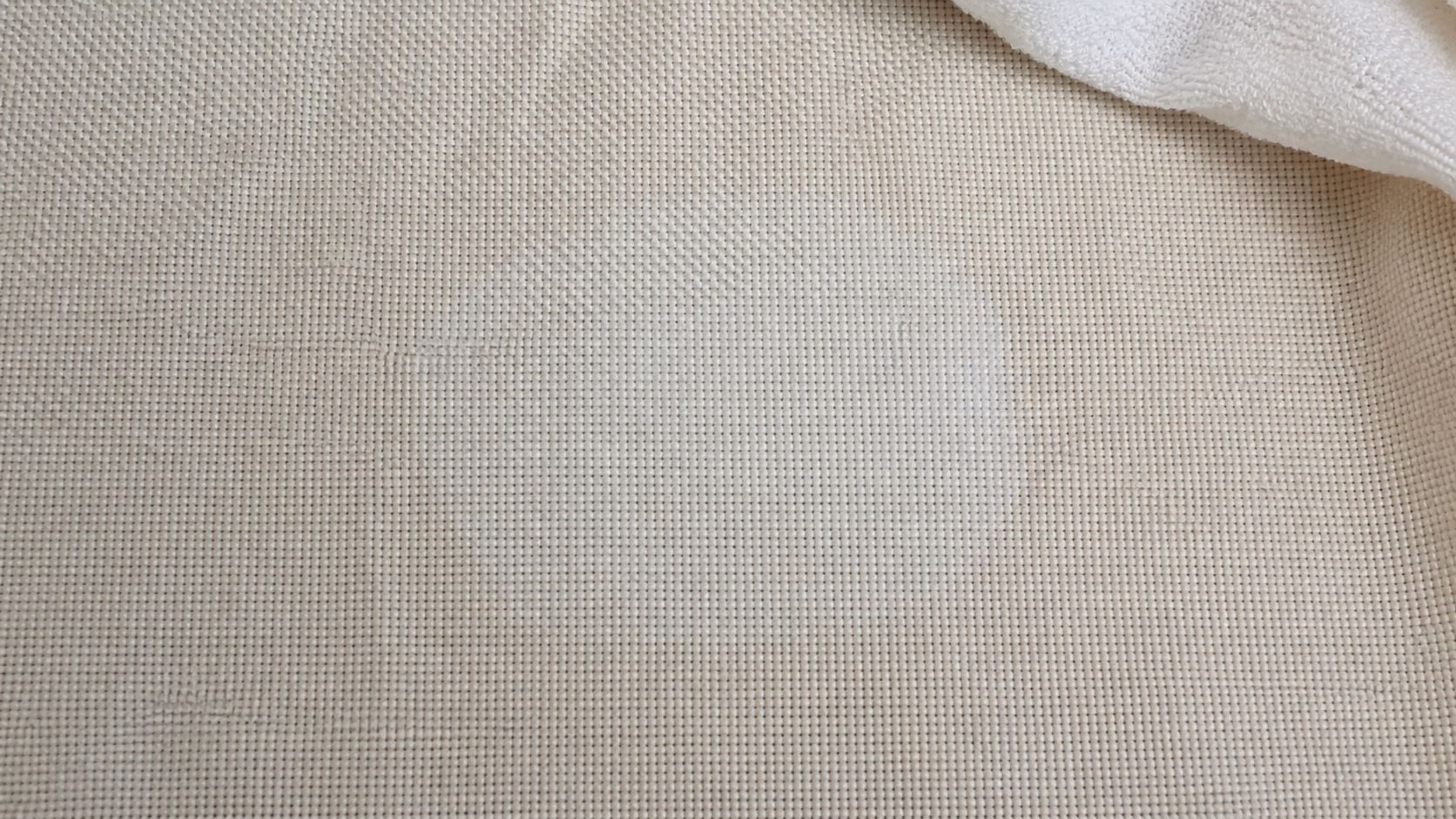 Påfør kompresset på stoffet i et par minutter for at blødgøre strukturen