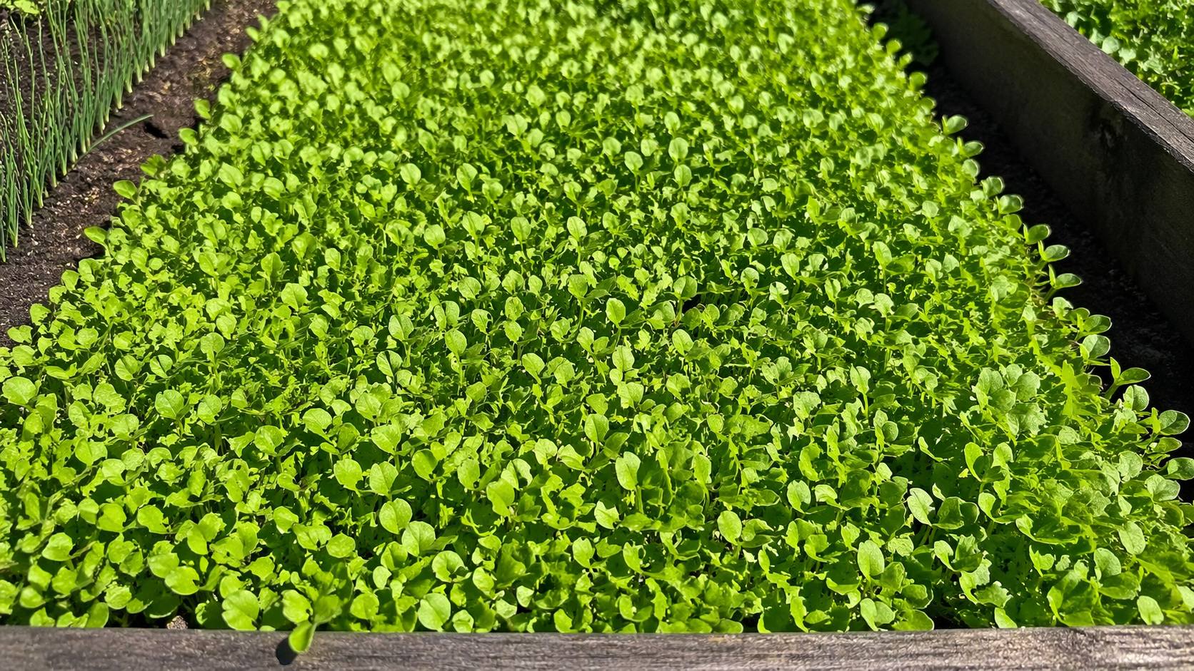 Tillad ikke overfyldning – udtynd rækkerne med tiden, og brug de afrevne spirer til salat.